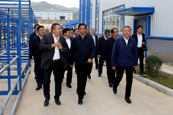 2020年9月24日 朝阳市市委书记、市人大常委会主任蹇彪携朝阳市政府常务副市长牛殿祥及朝阳市各部门领导在朝阳市人大常委会副主任、北票市委书记张秀军,市长付宗义的陪同下来我公司就我公司产业园二期建设、生产情况、业务开展情况及环保装备产业集群发展情况进行现场调研。公司董事长徐斌详细汇报了我公司情况。